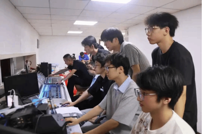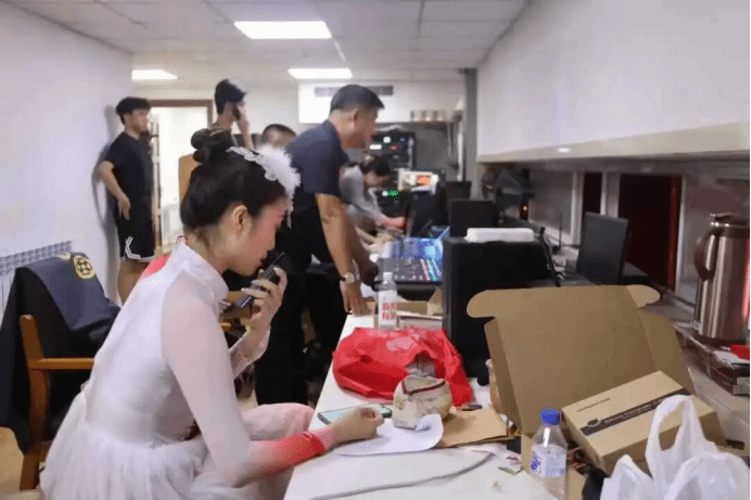 演出当天,大学生艺术团近40余名学生奔波在礼堂内外负责到第二教学楼、东西石头楼等教室催场。同学们认真配合、默契十足,确保后台麦克传递有序、代表队登台紧凑,背景视频、音响控制等工作有序进行。学校团委宣传部、组织部各部门坚守各自点位,责任到人,确保突发情况有措施。