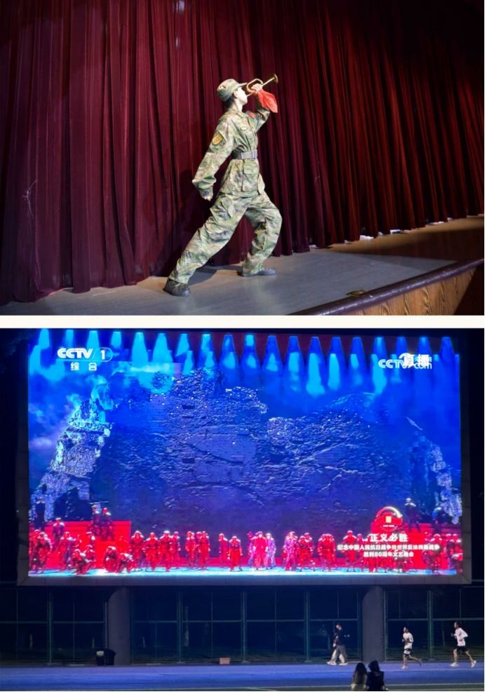 最终,展演活动形式丰富且满怀对抗日英雄的敬意,一声冲锋号,仿佛再次回到那个抗战烽火的年代,是一次生动的爱国主义思政音乐课。学校学生会、大学生活动中心管理团队与学校大学生新媒体中心于当天晚上在体育场直播了《正义必胜》纪念中国人民抗日战争暨世界反法西斯战争胜利80周年文艺晚会。